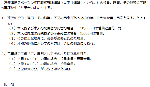 海部津島スポーツ少年団軟式野球連盟 弔事規定 [ PDF ]